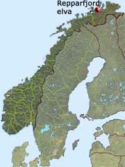 Repparfjordelva har sina källflöden på Sennalandet och rinner en stor del efter väg E6 mot Skaidi där den viker av och ut i Repparfjorden. Den betraktas med sina biälvar som en av de trevligaste flugfiske älvarna i Nordnorge.